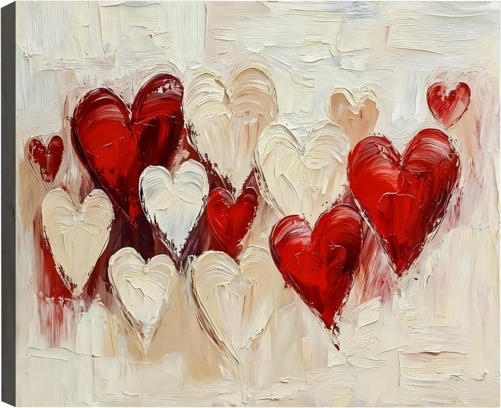 Add warmth and romance to your space with this RIBNTAK Valentine’s Day Framed Canvas Wall Art. Featuring a timeless red
