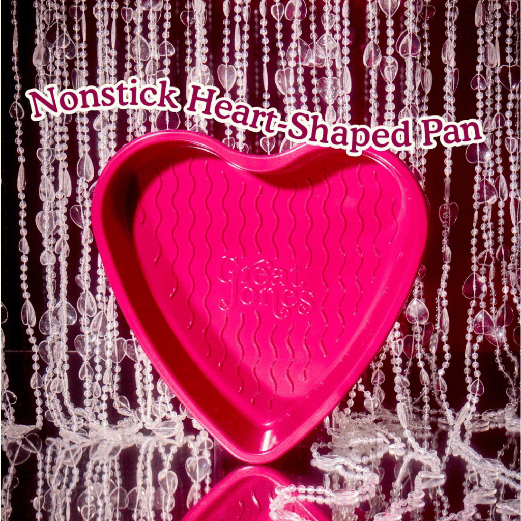 Bake with love using the Great Jones Sweetheart Heart-Shaped Cake Pan. Crafted from non-toxic aluminized steel with a premium nonstick